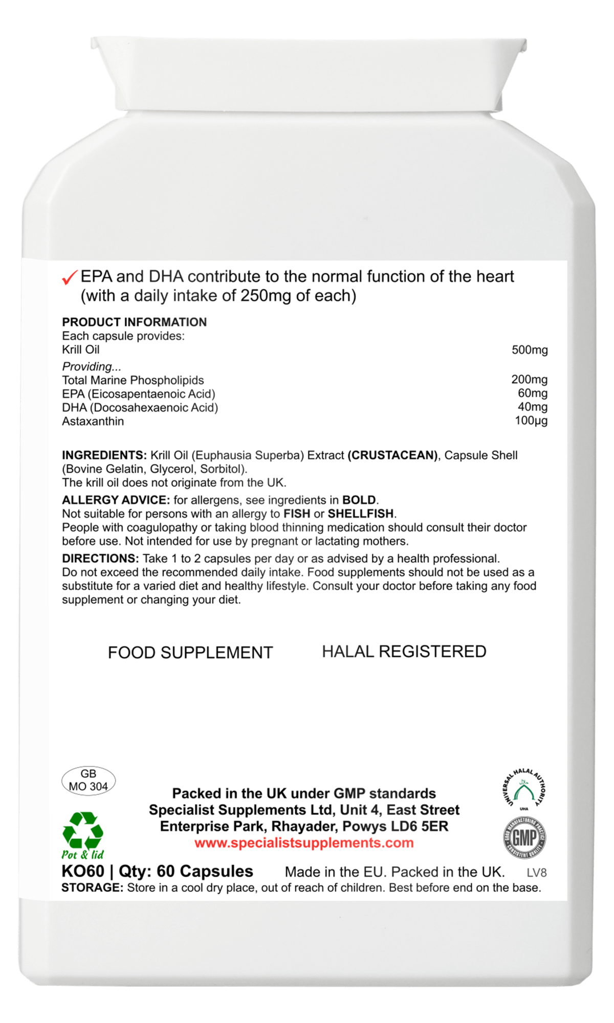 500mg Antarctic Krill Oil per capsule