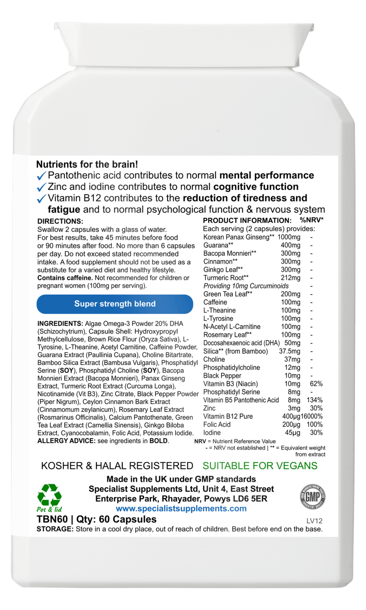 This expertly formulated food supplement combines scientifically backed nutrients and powerful botanical extracts to support cognitive function, mental clarity, energy production, and immune health – all in one advanced formula.